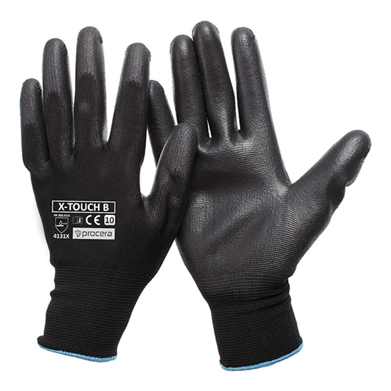 Предпазните ръкавици X-TOUCH BLACK са изработени отполиестер, като в захващащата си част са покрити с полиуретан.