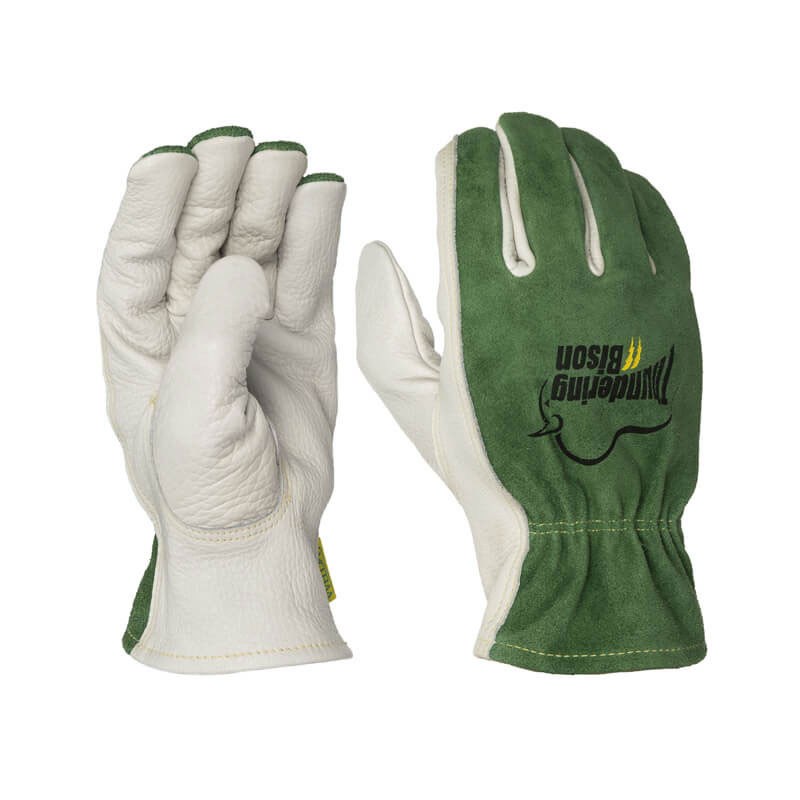 Премиум Кожените ръкавици на WELDAS ThunderingBison ™, модел 10-2633 са изработени от най-еластична зърнеста бизонова кожа в дланта и странично цепена телешка кожа на гърба.