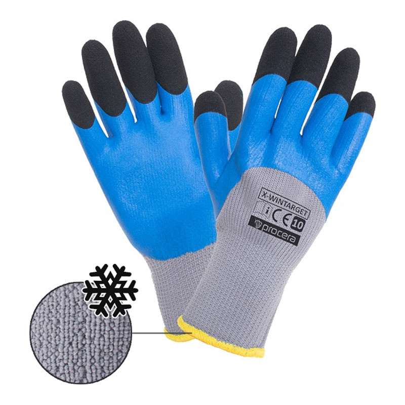 Зимните ръкавици X-WINTARGET са защитни ръкавици, подплатени с изолационен материал, предназначени предимно за зимна работа. Изработени са от полиестерна памучна материя от страната на захващане и 3/4 от тази страна са покрити със син латекс. Върховете на пръстите са покрити с черен пенолатекс.