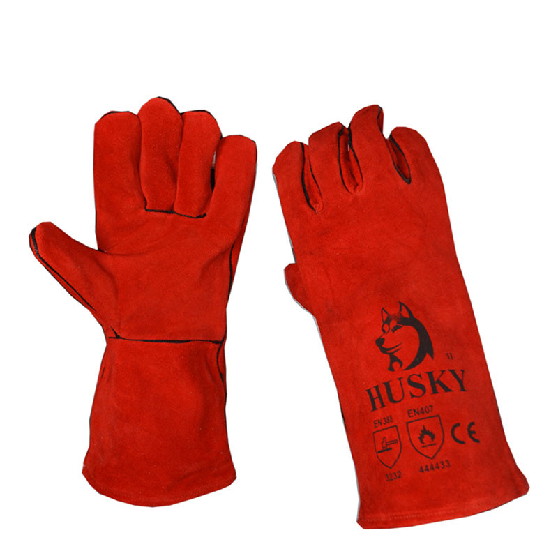Ръкавици с марката HUSKY, от цепена телешка кожа, с памучна подплата, дължина 35 см., топлоустойчиви. Ръкавиците са подходящи за заварчици. TOP QUALITY