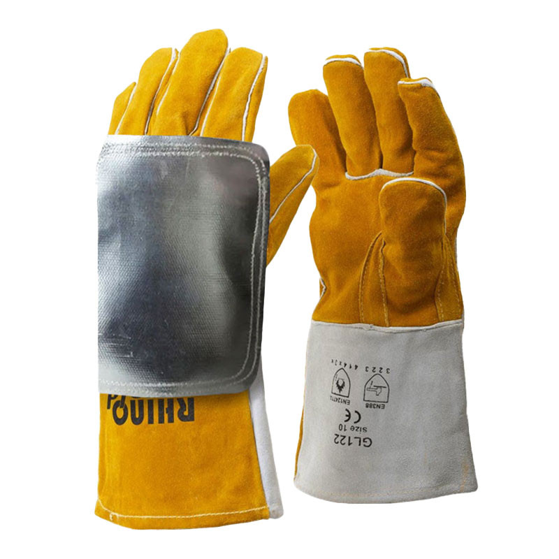 Един чифт ръкавици за заварчици с KEVLAR GL122 + Кожен щит за ръце с алуминиево фолио (1 бр.)