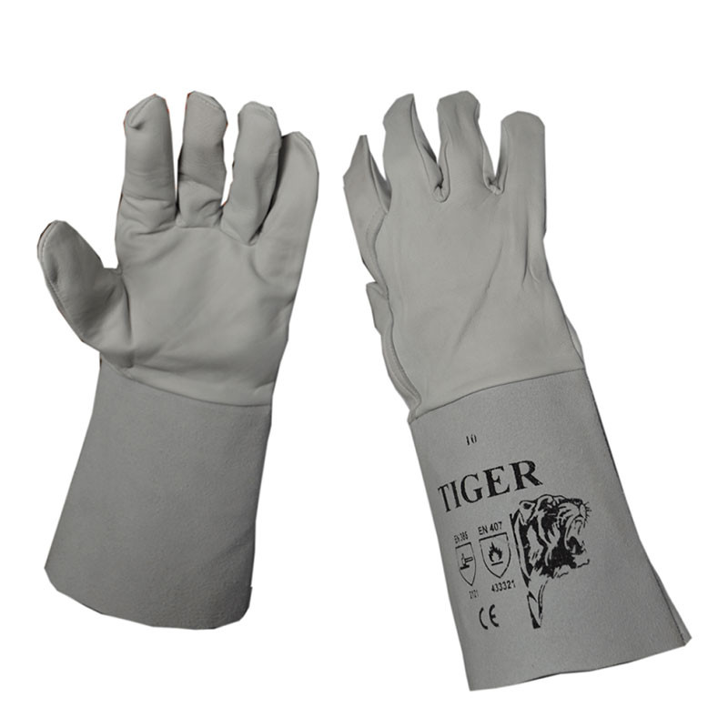 Работни ръкавици от цепена сива ярешка кожа на дланта, маншет от цепена телешка кожа 15 см.