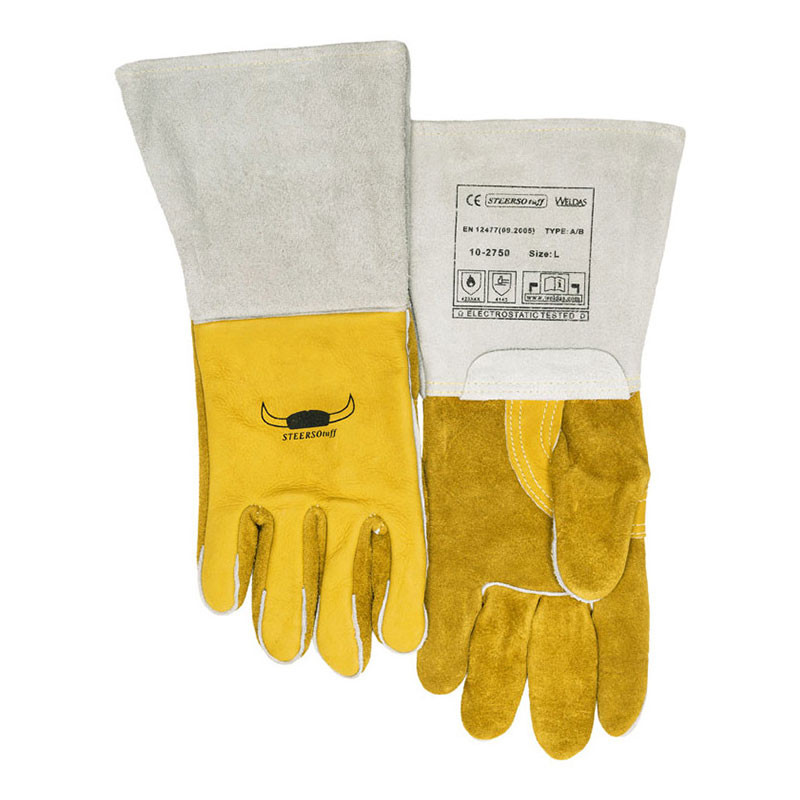 WELDAS Ръкавици за MIG заваряване 10-2750 STEERSOtuff ®, изработени от зърнеста и цепена телешка кожа, предлагат висок комфорт при всички заваръчни приложения.