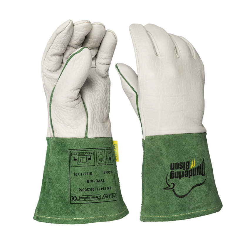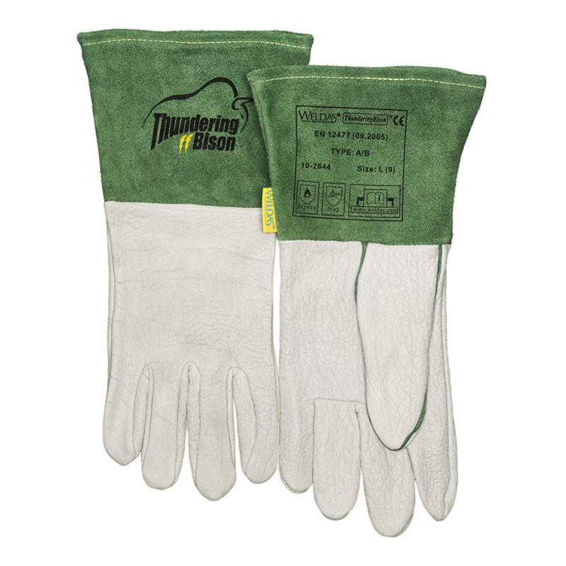 WELDAS Ръкавици за TIG заваряване 10-2644 ThunderingBison ™ с длан от бизонова кожа и маншет от цепена телешка кожа.