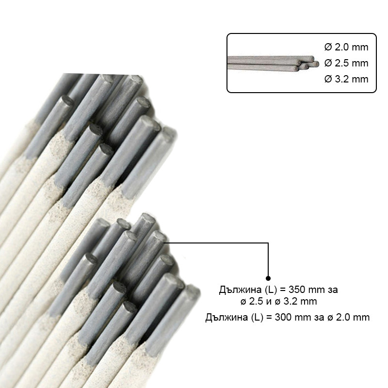 Висококачествените рутилови електроди "Z" 6013 се предлагат в разфасовка 2 кг и избор от Ø2.0 mm, Ø 2.5 mm или Ø 3.2 mm.