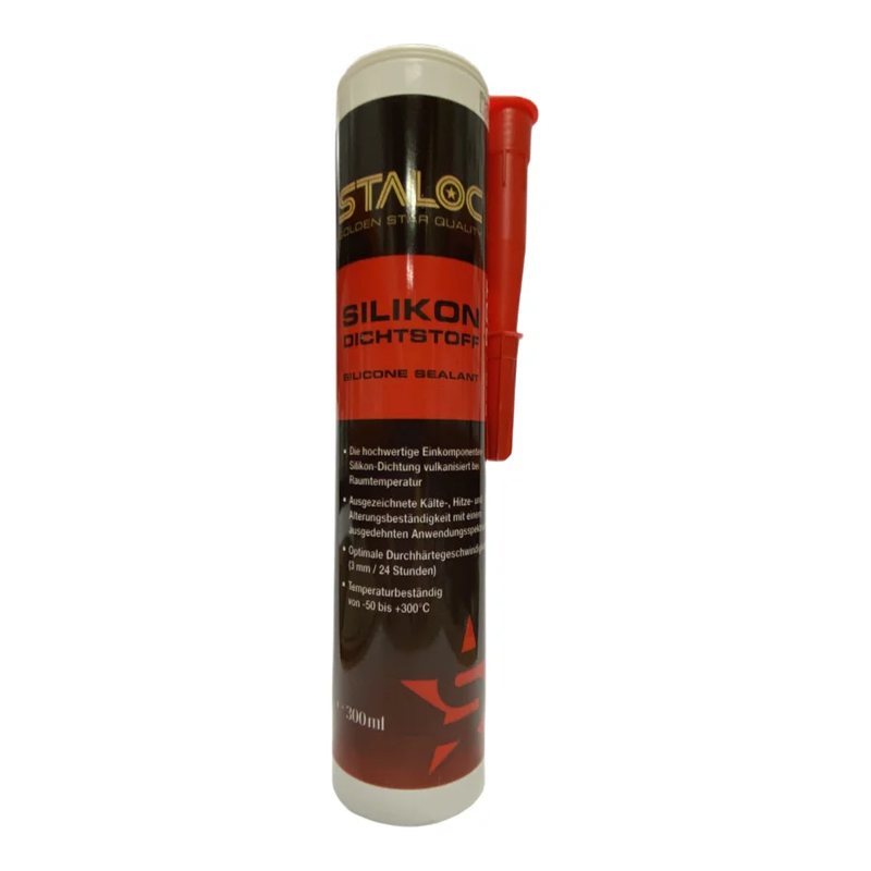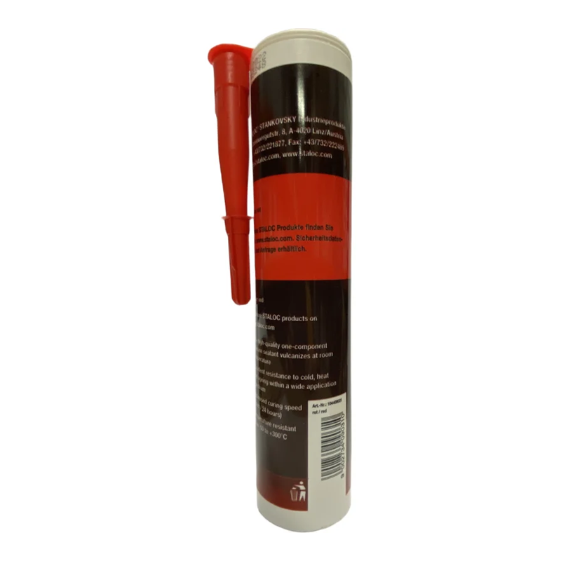 STALOC Маслоустойчив високотемпературен силикон е висококачествен, еднокомпонентен, червен, високотемпературен RTV силиконов уплътнител, който се втвърдява при стайна температура до силиконов каучук. Той поддържа еластичност и има отлична адхезия, което му позволява да издържа на различни динамични натоварвания, като удар и вибрации.