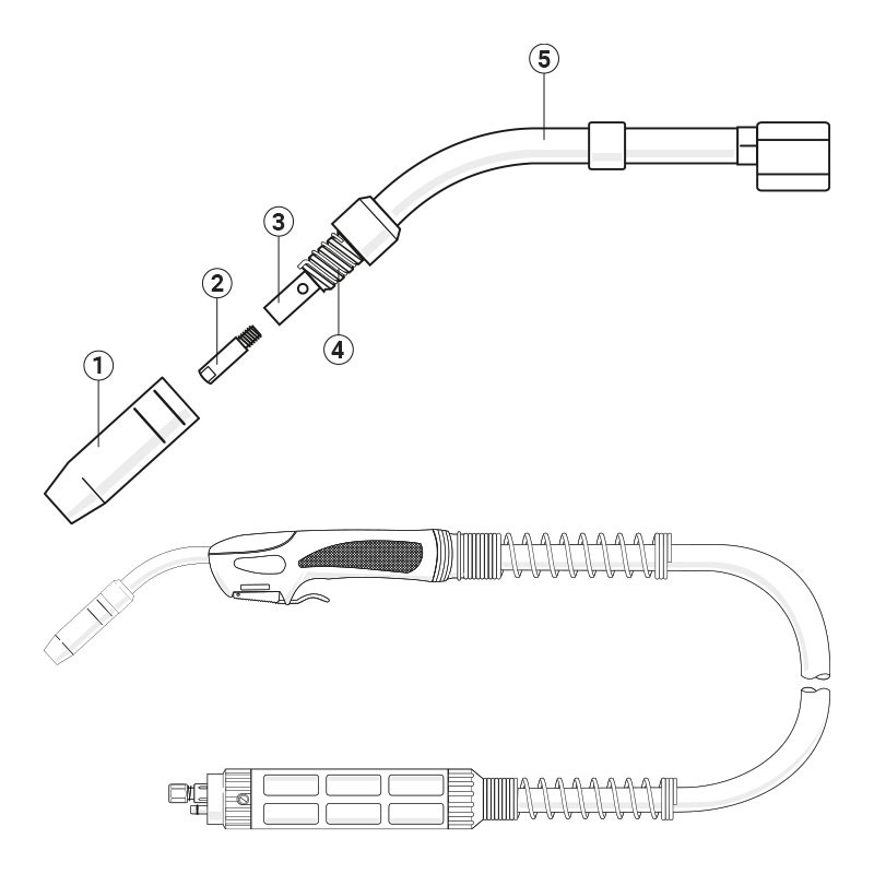 Заваръчен шланг TW-15 X60 Binzel с дължина 3 m, 4 m или 5 m.