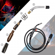 MIG / MAG горелки от тип Spider с двойно захващане е висококласна заваръчна горелка със сферични съединения и стабилизиращи пружини, благодарение на която работата става възможно най-удобна.