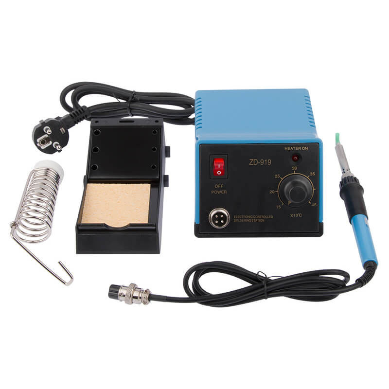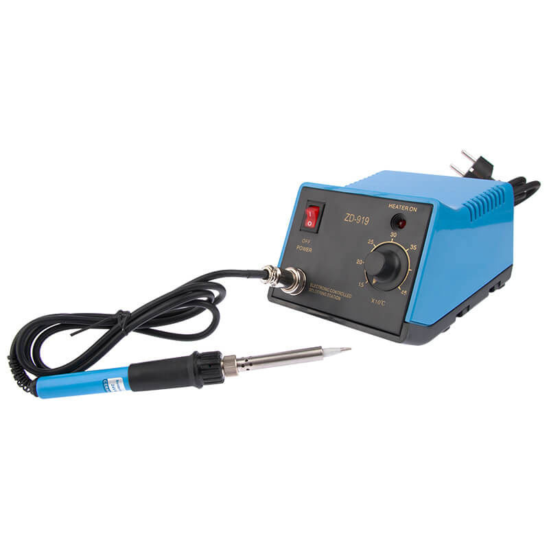 Станция за запояване, ZD-919, с поялник тип писалка с регулатор на температурата в диапазона от 150 °C до 450 °C, консумирана мощност 48 W.
