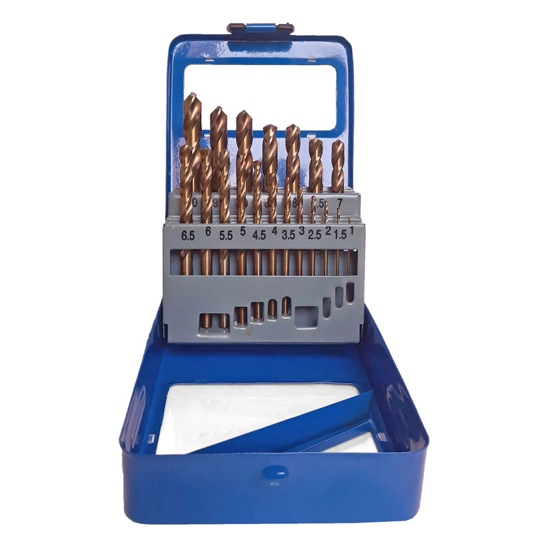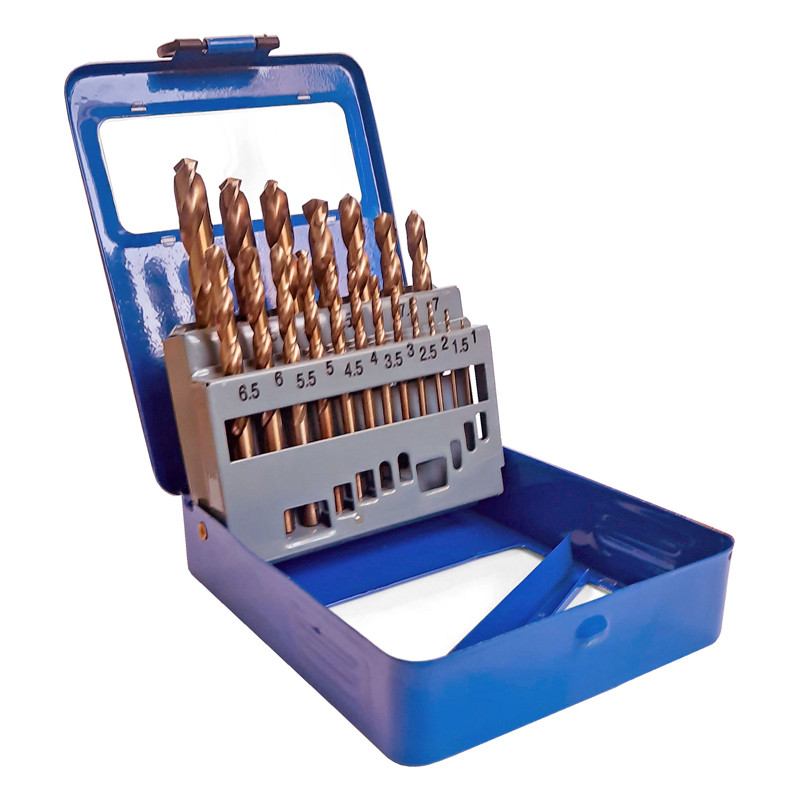 5% кобалт и легиращи елементи в стоманата осигуряват дълъг експлоатационен живот, ниска крехкост, устойчивост на износване, подобрени режещи свойства, висока твърдост и повишена износоустойчивост. 19-те свредла в комплекта осигуряват широк спектър от приложения.