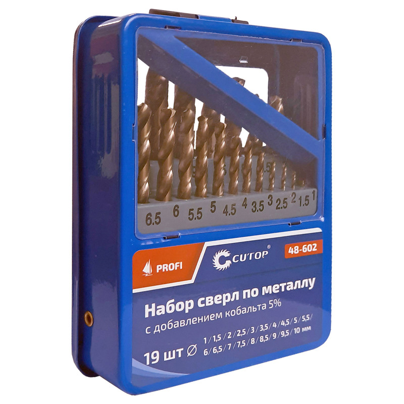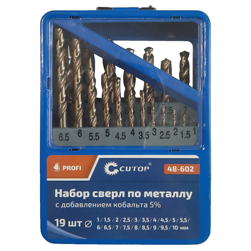 Комплектът професионални свредла за метал CUTOP Profi с 5% добавка на кобалт е предназначен за пробиване на отвори във въглеродни и легирани стомани, сив и ковък чугун и цветни метали. Свредлата са с най-висок клас на точност A1.