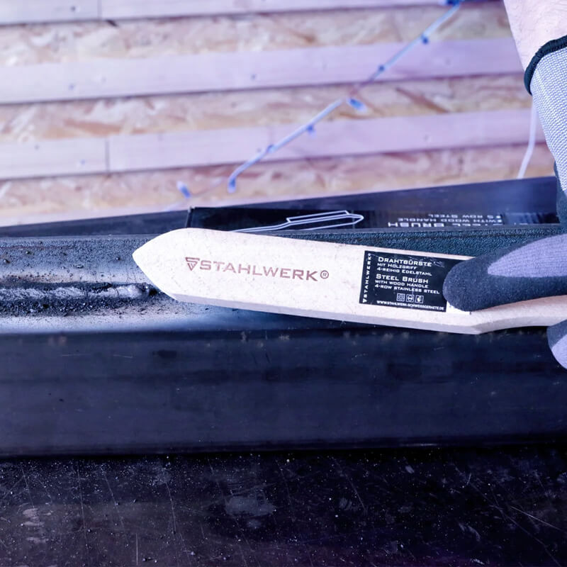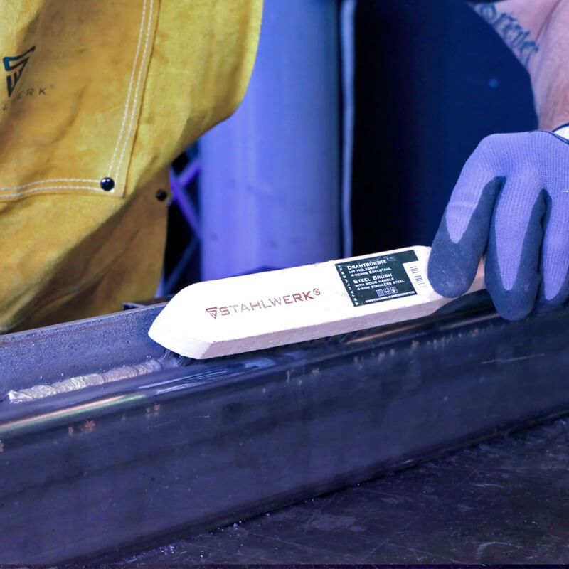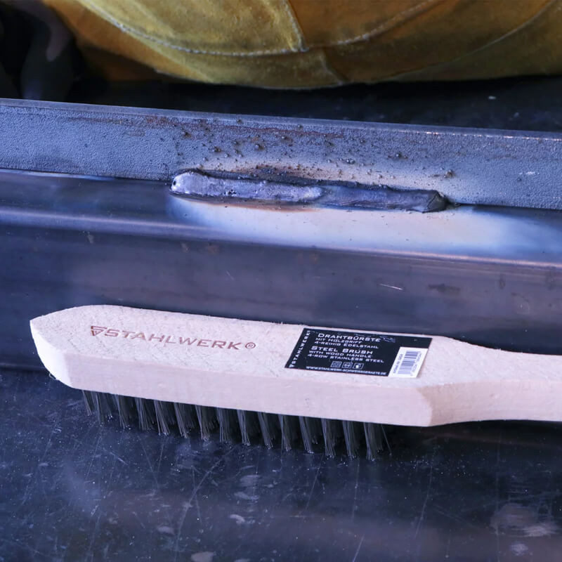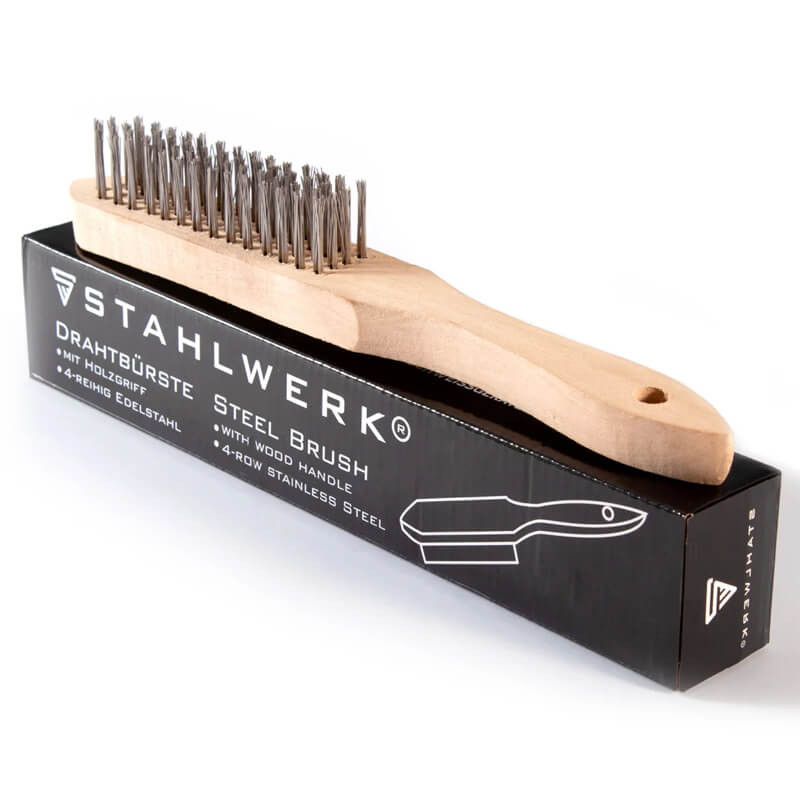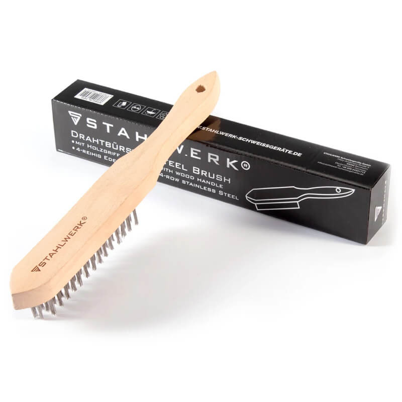 4-редовата телена четка STAHLWERK е мощен ръчен инструмент, който премахва упорити замърсявания от всякакъв вид повърхности. Телената четка е с четири реда издръжливи телени влакна с облицовка от неръждаема стомана и е идеална за работа преди и след заваряване. Влакната са високи 25 мм и са здраво вградени в здравия дървен корпус на четката.