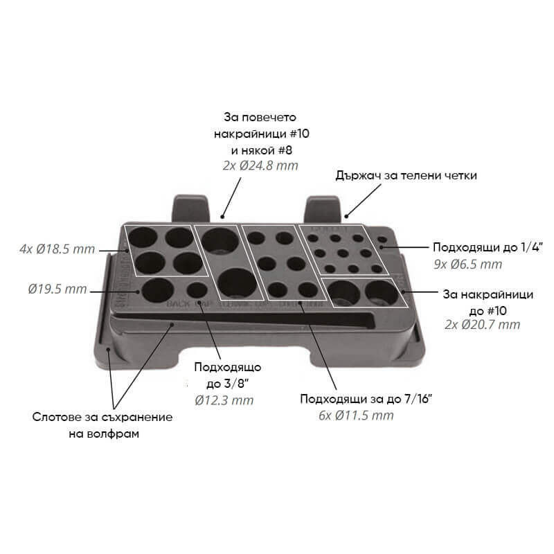 TIG Органайзерът за части помага да поддържате работното си пространство подредено и организирано.