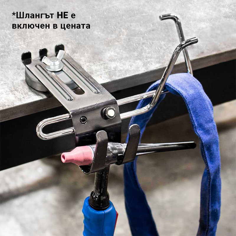 Когато се използва всеки сантиметър от пространството на вашата работна повърхност, стойката за шланг за ръба на масата държи шланга ви на ръба на масата, далеч от пътя, но лесен за бърз достъп.