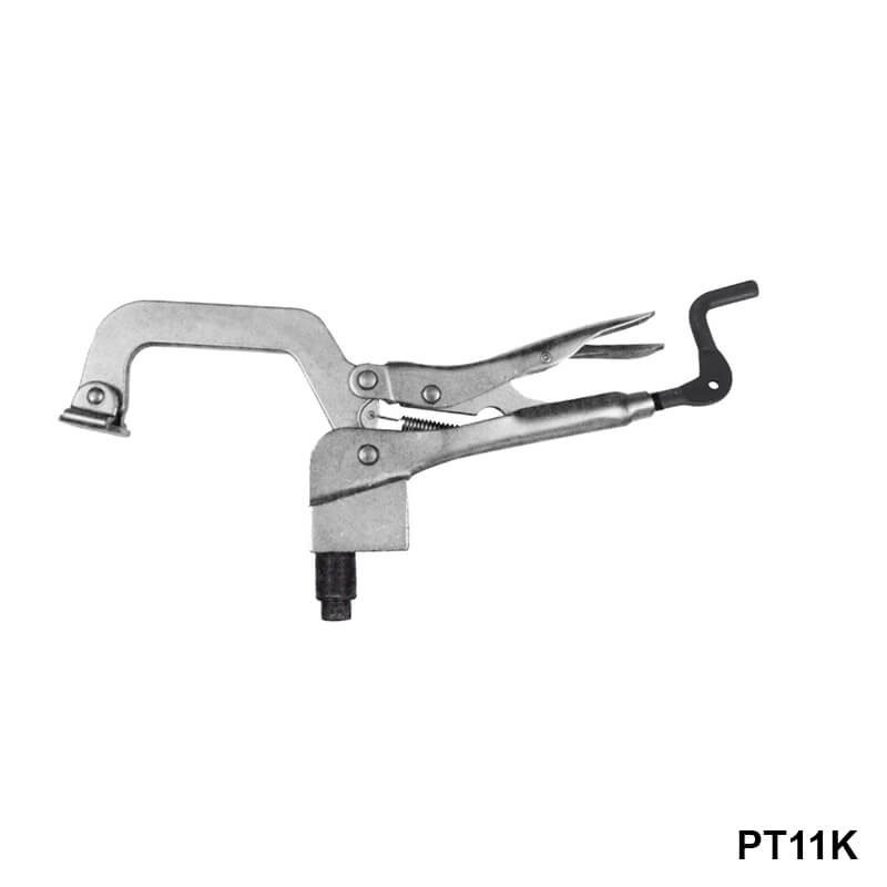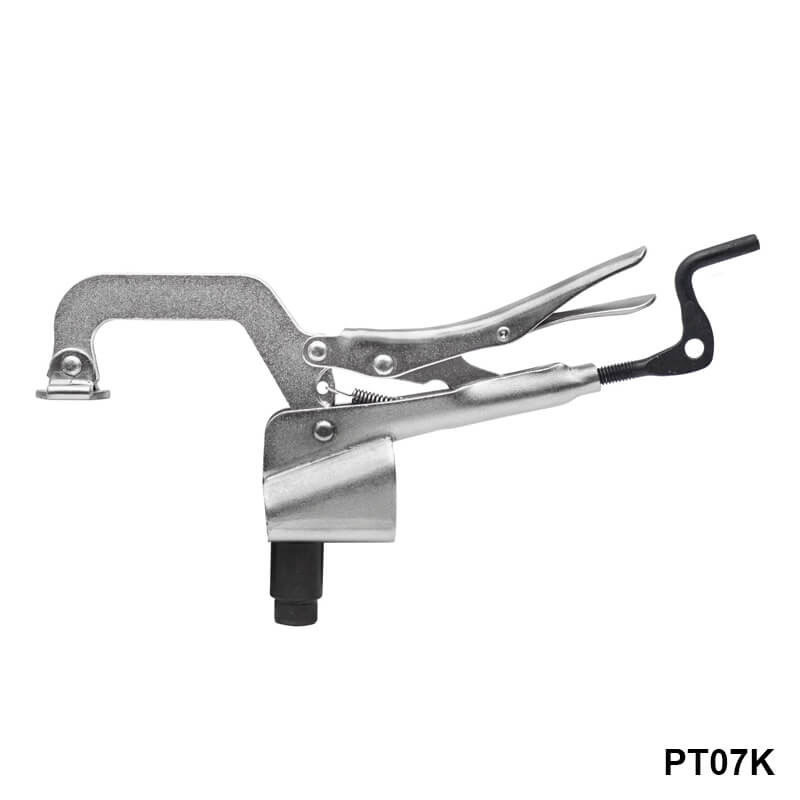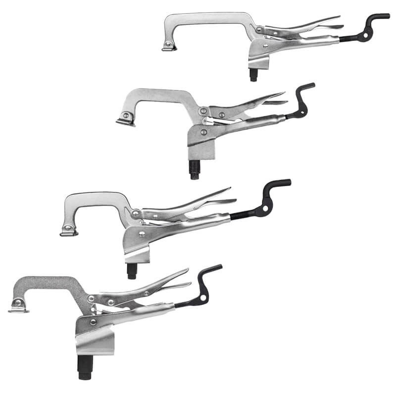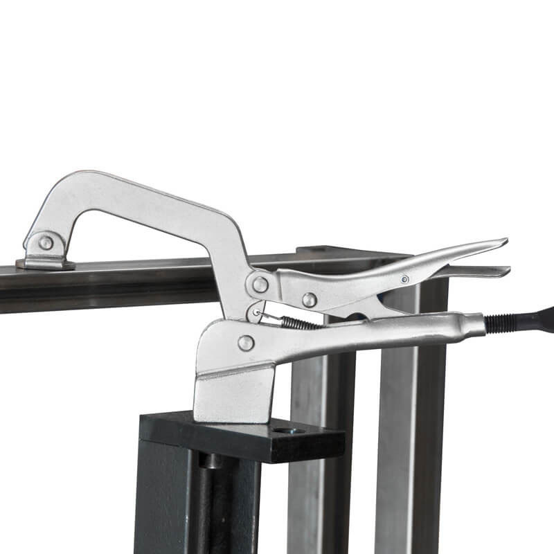 Монтирайте върху дясната ъглова скоба, щранговия блок или затягащите квадрати за натискане надолу на затягане на висока височина за по-високи детайли. Патентованата задна манивела позволява регулиране на натиска на скобата, докато скобата е в заключено положение. Използвайте манивелата, за да настроите предварително отвора на скобата при повтарящи се приложения на затягане.