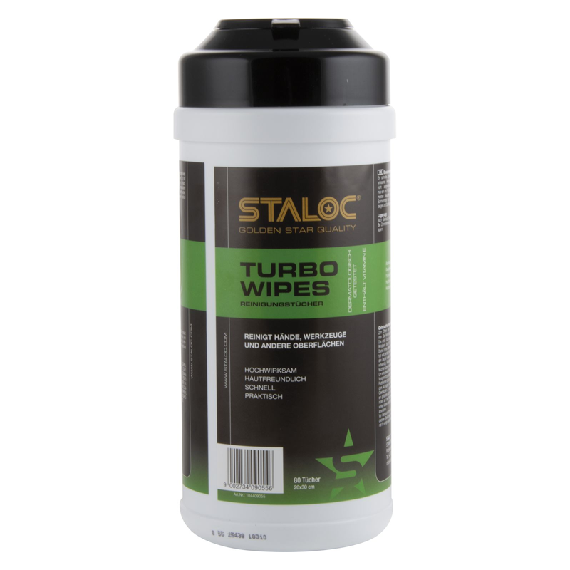 STALOC Turbo Wipes кърпичките премахват невтвърдени уплътнители и PU пяни, масла, много лепила, бои и смазочни материали от ръце, инструменти и повърхности.