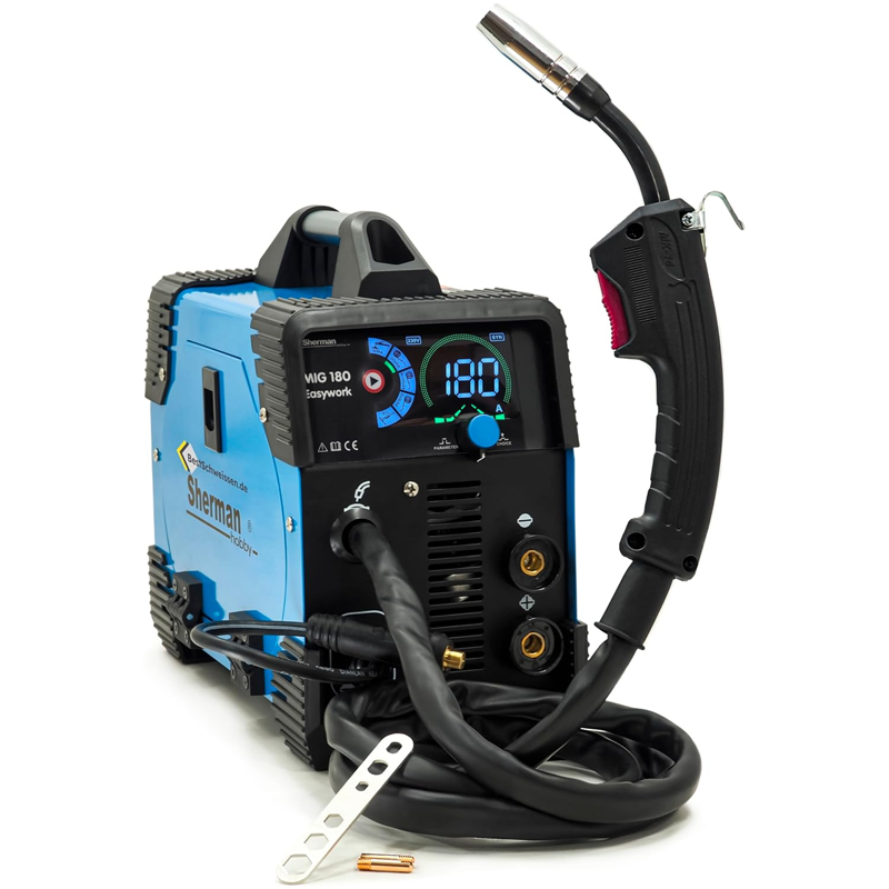 Синергичният полуавтоматичен заваръчен апарат MIG 180 Easywork е лесен за използване уред за ръчно заваряване на стомана и цветни метали, използвайки MMA (електрод с покритие), TIG (нетопим електрод) и MIG/MAG методи .