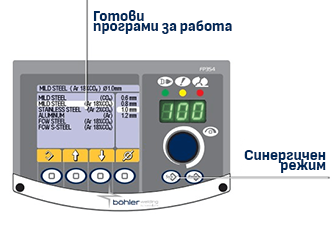 Programs - Позволява запаметяване и управление на до 8 персонализирани заваръчни програми, съобразени с нуждите на оператора.