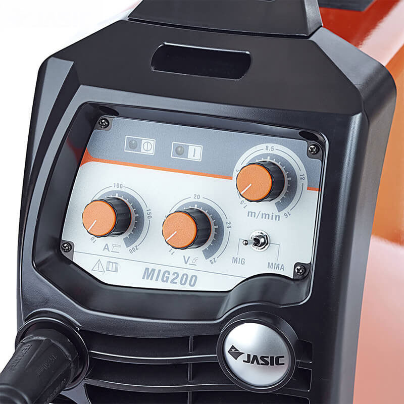 JASIC MIG 200 (N220) е MIG MAG / MMA многопроцесорна заваръчна машина, препоръчвана за заваряване в защитна среда на всякакъв вид материал, оборудвана с мощни IGBT компоненти, за отлична производителност и заваряване.