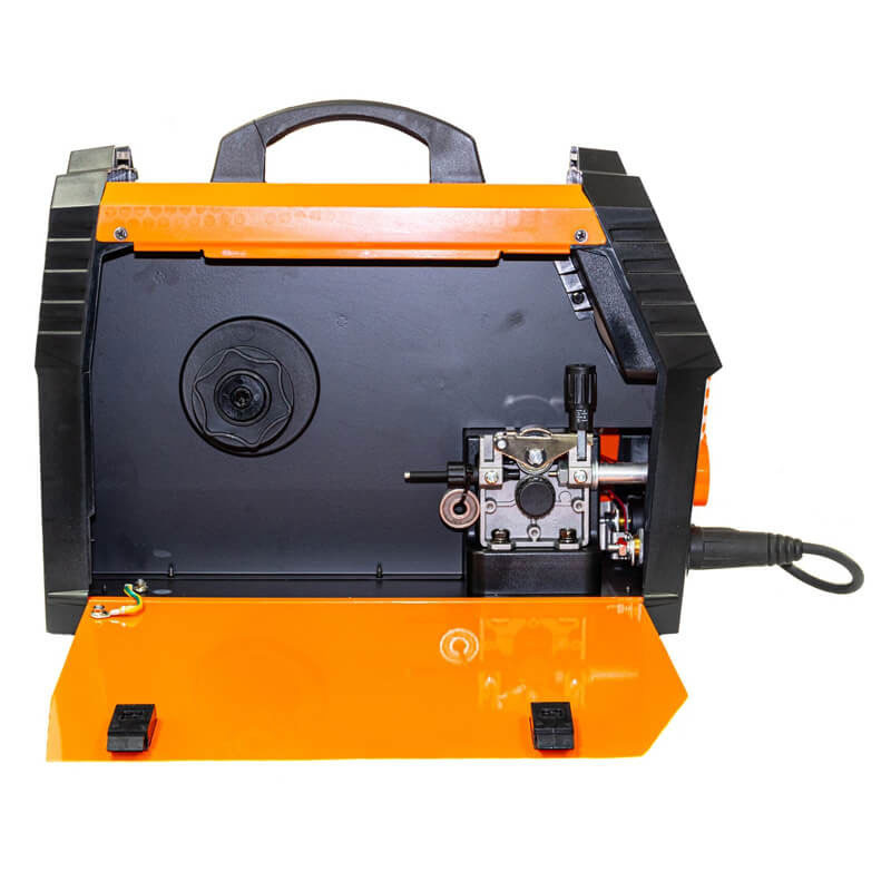 Инверторната схема е базирана на транзистори тип IGBT, което позволява мощно оборудване със сравнително леко тегло, компактни размери и дълги времена на превключване. По време на полуавтоматична работа, процесът на заваряване се контролира от инверторната верига за управление, с постоянна дъга, броят на пръски е сведен до минимум, а самото заваряване е изключително ефективно. Вграден блок за намаляване на неактивното напрежение (VRD) с индикация на контролния панел.
