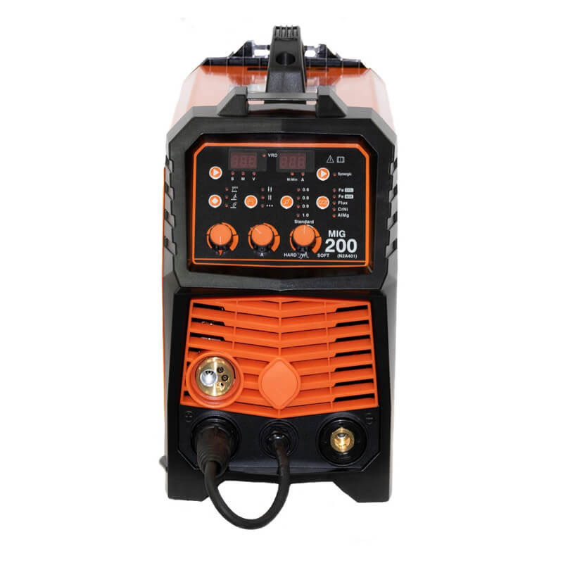 Jasic Mig 200 Synergic Premium (N2A401) предлага проста функция за настройка: параметрите са осигурени за CO2 и смесен газ, като се използва тел с диаметър Ø 0.8 mm и Ø 1.0 mm.