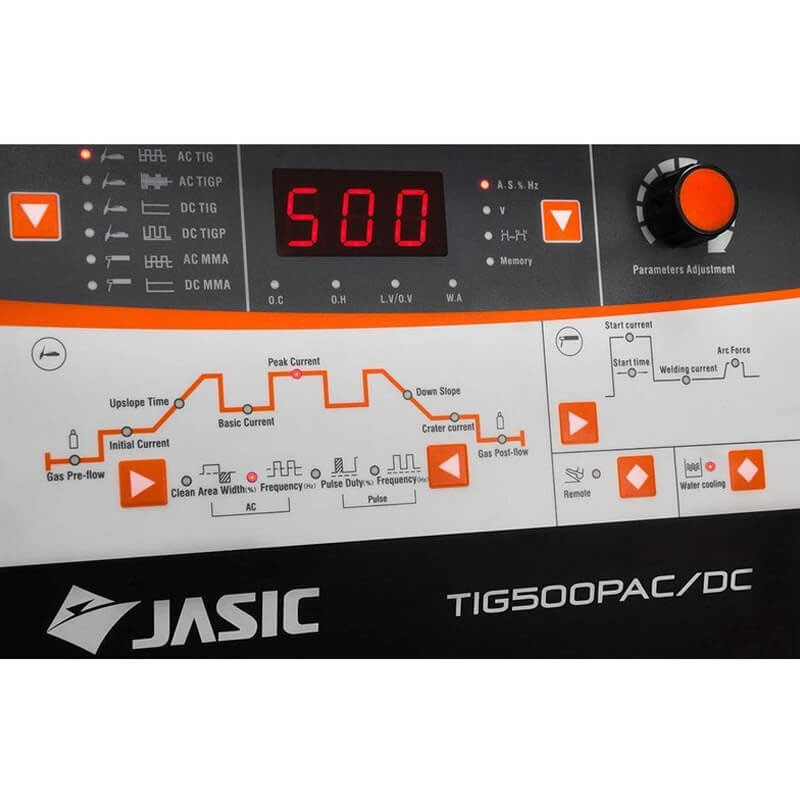 Основни характеристики на JASIC Заваръчен апарат TIG 500P AC/DC (E1312) водно охлаждане: