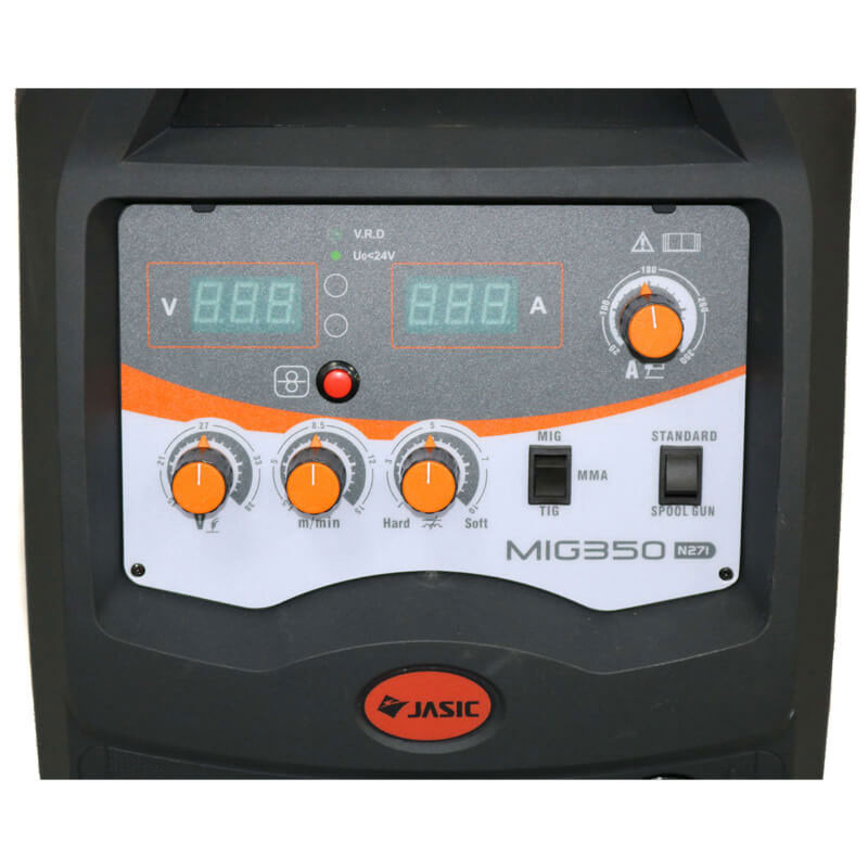 MIG/MAG | TIG | MMA заваръчен апарат - JASIC MIG 350 (380V) Професионален инверторен тип, препоръчва се за заваряване в защитна среда на всякакъв вид материали, оборудван с мощни IGBT компоненти, за висока производителност и отлично заваряване.