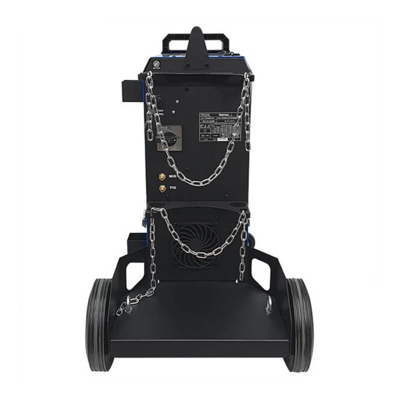 Функции: Сила на дъгата, спиране на вентилатора, функция за почистване на електроди, горещ старт, наклон на тока, наклон на тока, опция за макара, подаващо устройство с 4 ролки, постпоток на газ TIG, скорост на приближаване на захранващото устройство, предпоток на газ, импулс на TIG, контрол на индуктивността, заваряване без газ, цифрово управление, въглеродна стомана Synergy, бързо подаване на тел, ръчни настройки, VRD, избор на AC вълна, LED дисплей, Synergy алуминий, Synergy самоекраниран проводник.