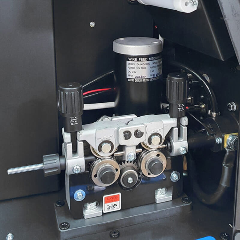 Заваръчният апарат е оборудван с 4-ролково телоподаващо устройство и функции Hot Start, Arc Force, VRD и Soft Start. Освен това има много удобства, които улесняват работата: функция Fan Stop, която изключва вентилатора при ниско натоварване, осветление на захранващата камера, закачалка за ролки и държач за MIG, държачи за TIG тел, осветление на пространството пред заваръчния апарат, газова връзка с бърз конектор R21.