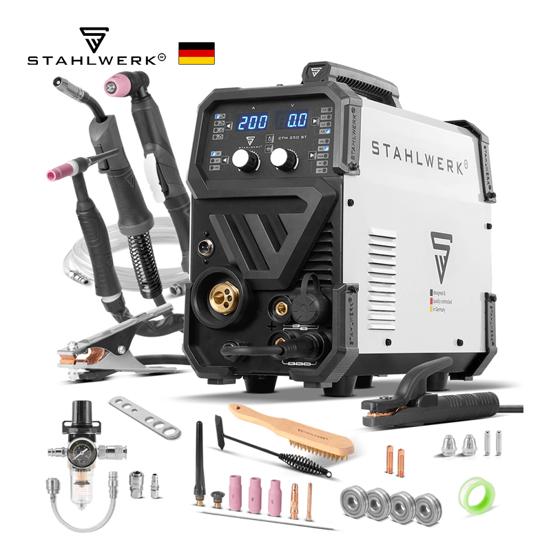 STAHLWERK CTM-250 ST е универсален комбиниран заваръчен апарат 4 в 1 с интегрирана функция за плазмено рязане CUT.