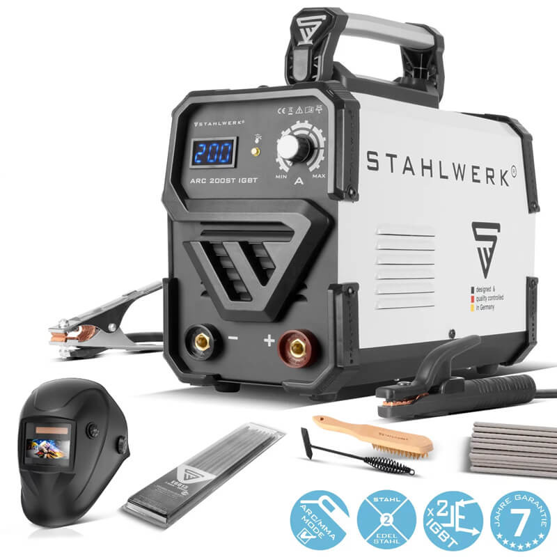 STAHLWERK ARC-200 ST IGBT е компактна MMA заваръчна машина с истински 200 ампера.