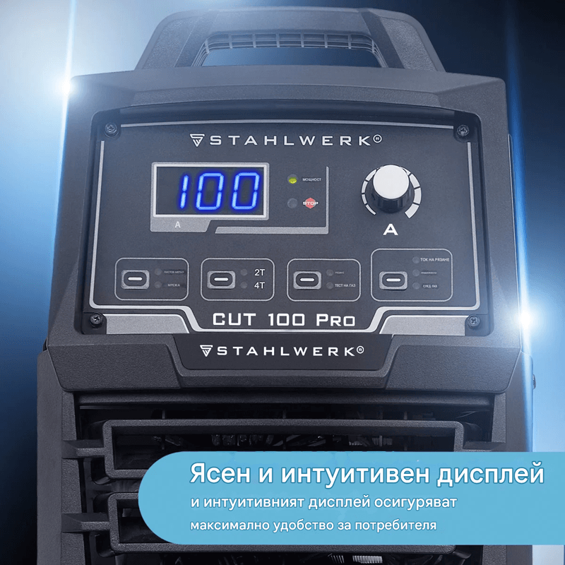 100 A инверторен плазмен резак | HF пилотно запалване | дигитален дисплей | THC интерфейс за CNC | капацитет на рязане до 44 мм | плазмен резак с функция 2T/4T