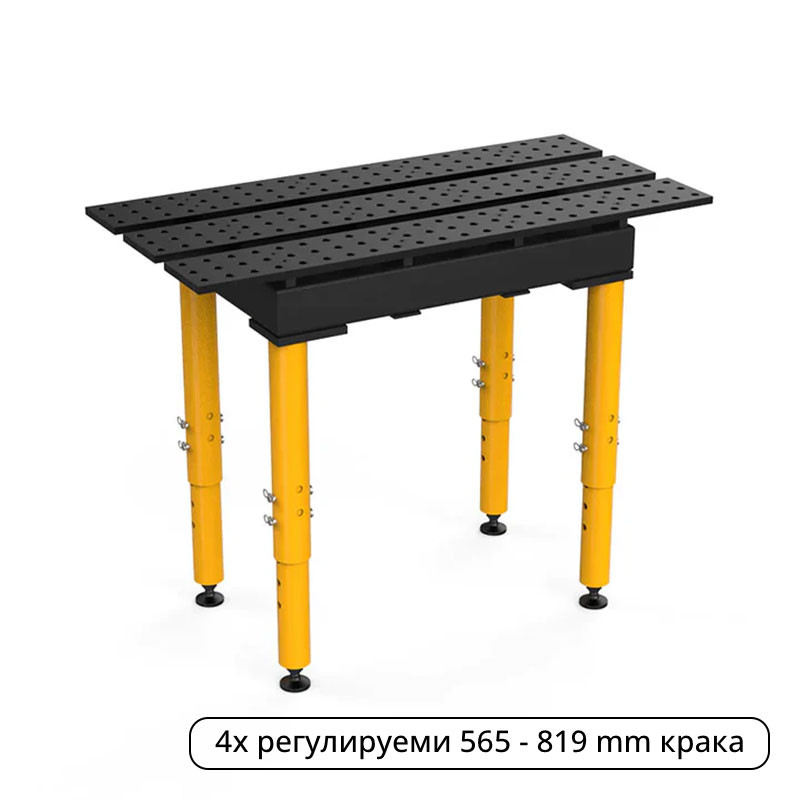 Всички маси BuildPro® са изработени от 16 mm дебела стоманена плоча, с Ø16 mm CNC машинна обработка и отвори, скосени в 50 mm решетка.